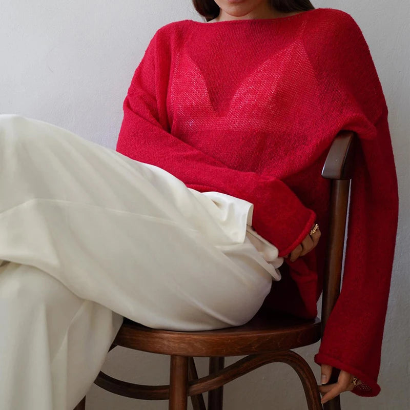 Ready to elevate your autumn wardrobe? Say hello to the ultimate layering essential! Gia is our lightweight, see-through sweater is designed to go over your favorite crop tops giving you that cozy but still stylish look!